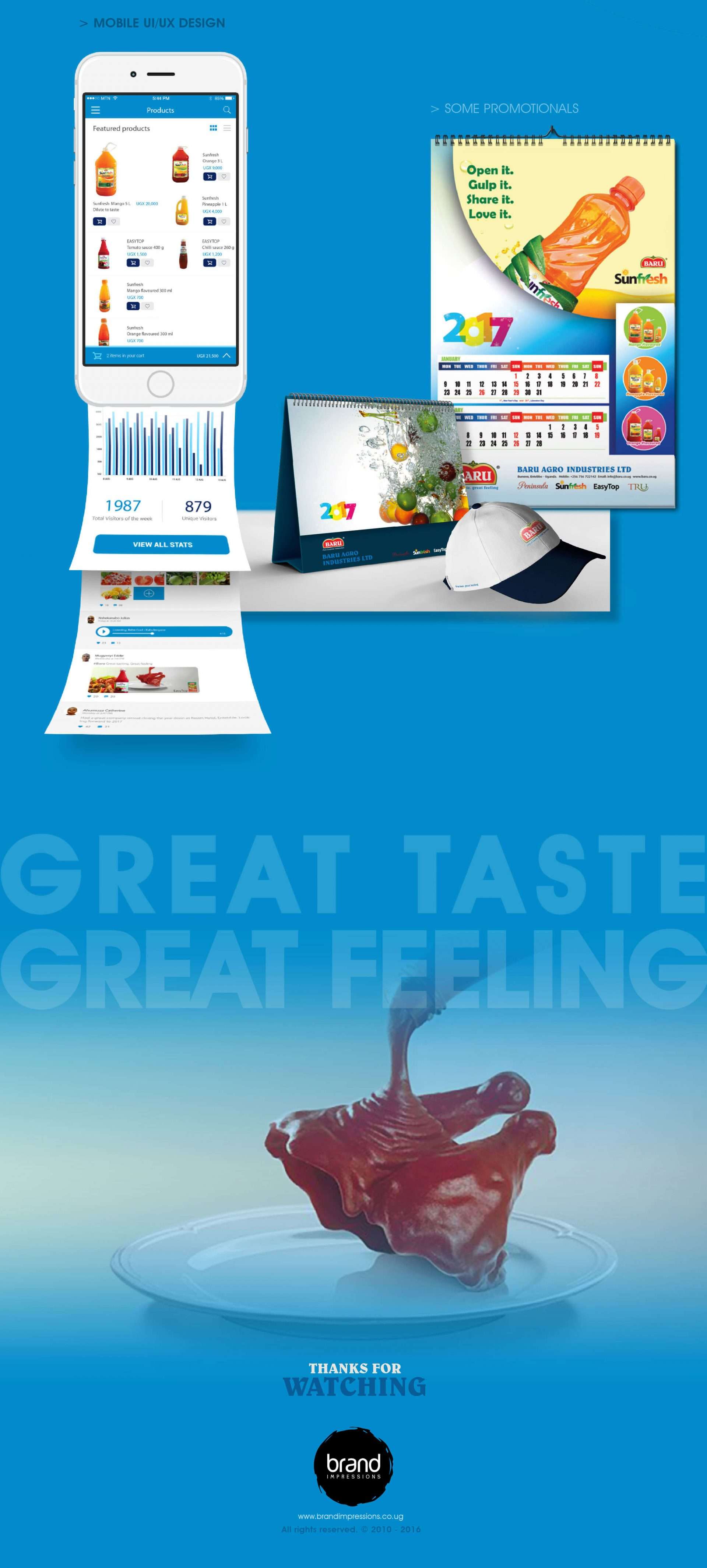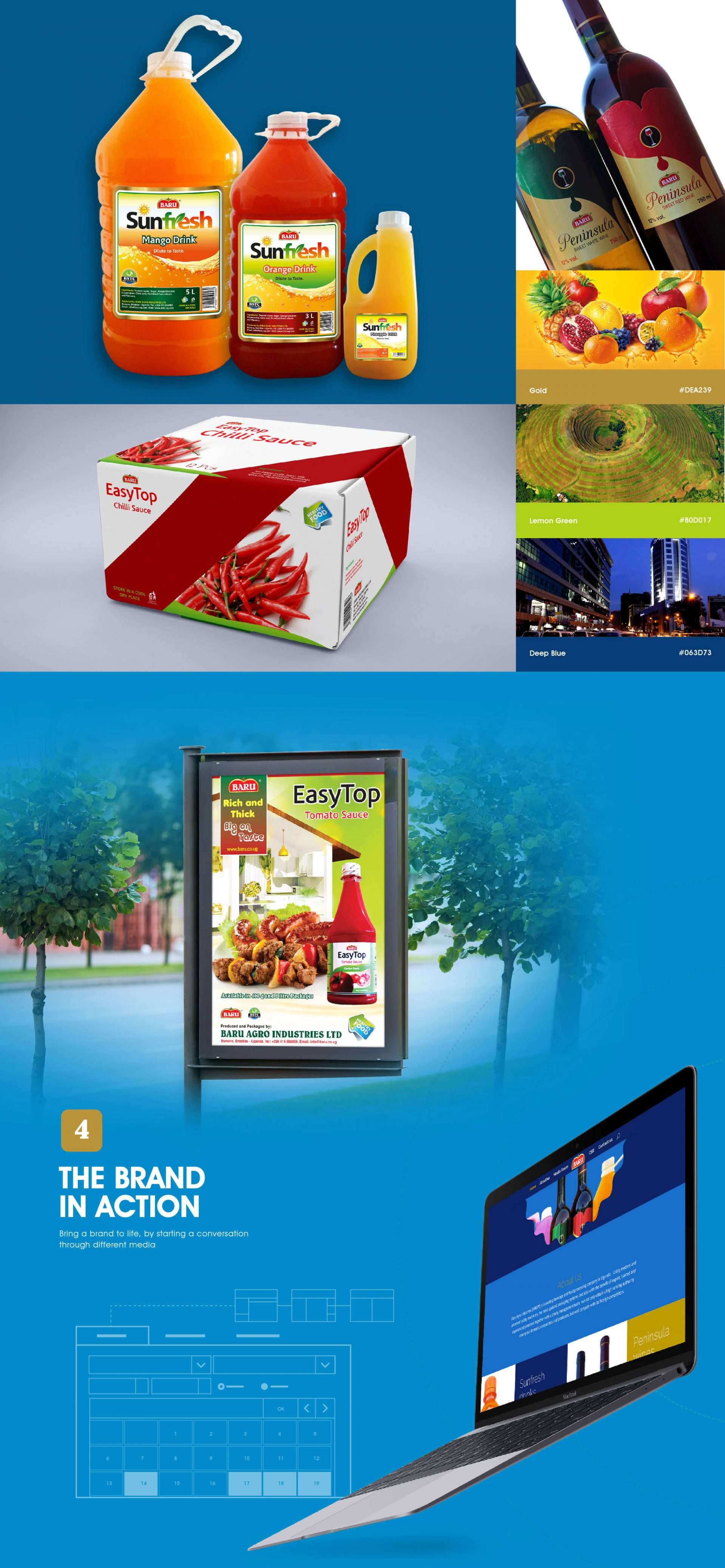 BARU Agro Industries Limited is a blue chip company manufacturing premium foods and beverages under the Brand names; Sunfresh flavored drinks, Peninsula wines, Easytop sauces, and BARU Mineral Water. We’ve created a unique visual system and strategy across the wide existing spectrum of visible media applications.